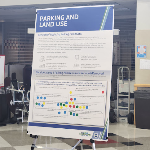 Milling about the Commons, BhamByBus found there was a great deal of attendee interest in a presentation board about considerations around parking, parking minimums (which may be reduced or eliminated in the future), and land use that asked the question: "If these parking requirements are reduced or removed, what are the most important considerations to include alongside these changes?"