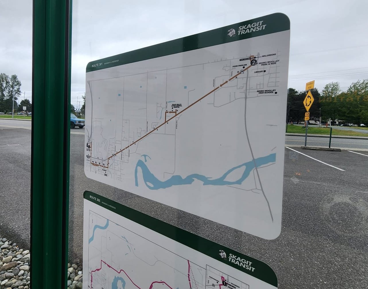 As someone who lives car-free in (and works remotely from) Bellingham, most of my work travel involves heading into Seattle a couple times a month. As it happened, my co-workers were headed in my direction. But Sedro-Woolley, a farming community of about 12,000 people along the North Cascades Highway, is a "closeby yet so far" destination if you depend on transit.