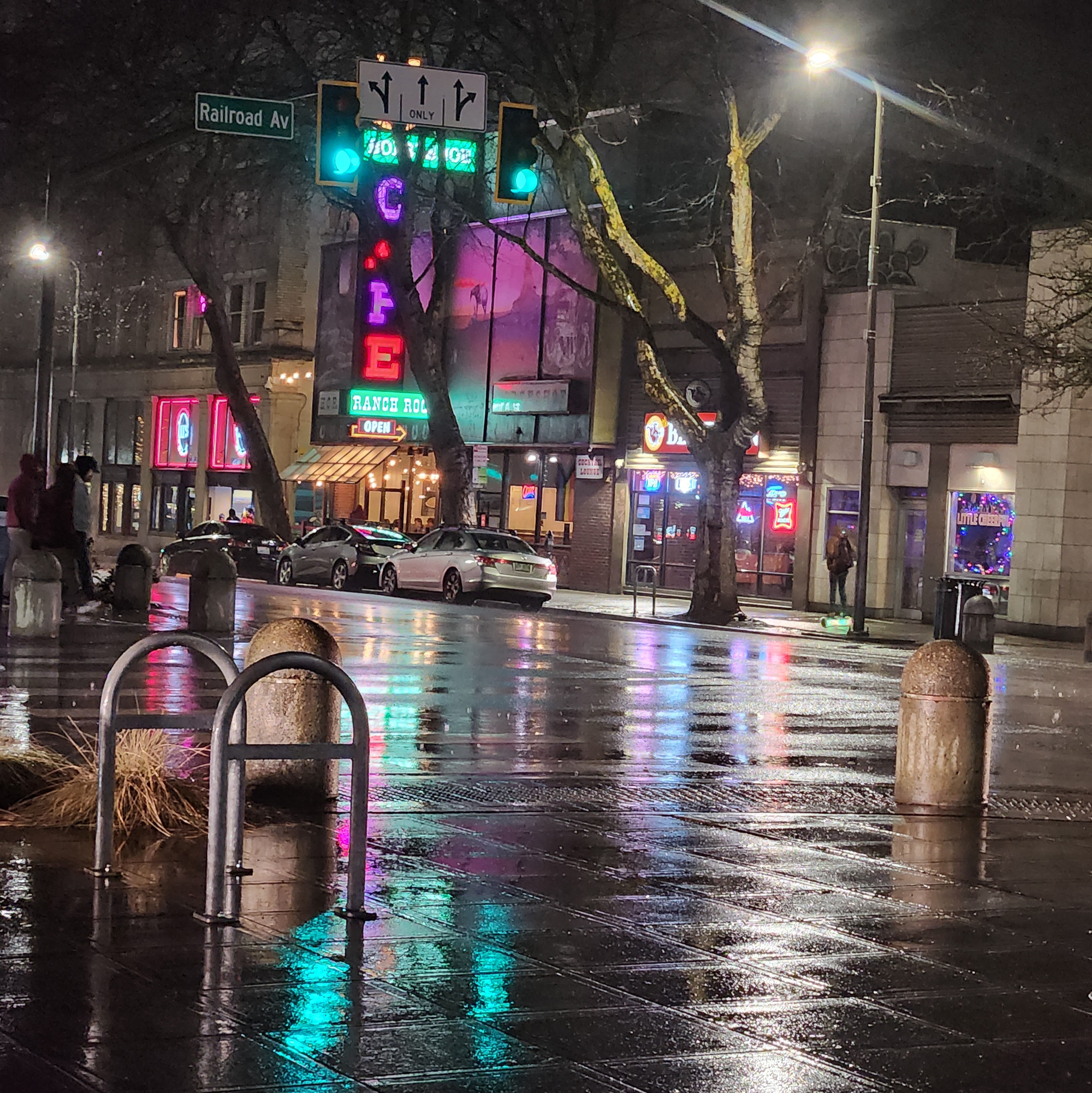 - For breakfast adjacent to Route 1's terminus at Bellingham Station, check out The Coffee Shop by Hammerhead Coffee Roasters (405 E. Holly Street at N. Forest Street) for biscuits and biscuit sandwiches; Avenue Bread's Downtown Bellingham location (1313 Railroad Avenue) for "eggenue" creations; Little Cheerful Cafe (133 E. Holly Street at Railroad Avenue) for great breakfast specials and the classics; and The Bagelry (1319 Railroad Avenue), which has been making bagels since 1984. Nearby crêperies include Sweet As Waffles (122 E. Magnolia at Railroad Avenue) and AB Crêpes (1311 Railroad Avenue between E. Holly and E. Magnolia Streets).