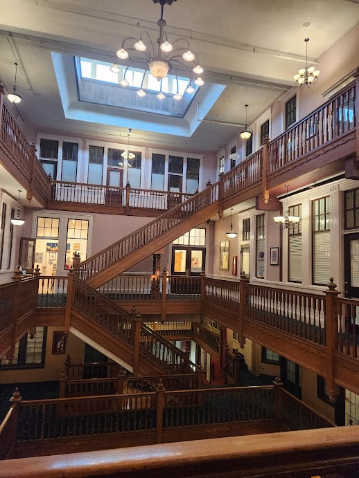 At 12th Street & Harris Avenue, rise two large brick buildings: The Richardsonian Romanesque Sycamore Square building (1200 Harris Avenue) was built in 1890 as the Mason Block. Inside, the building includes a large three-level atrium surrounded by balconies and staircases that's home to a few restaurants restaurants (including The Black Cat and Mambo Italiano) and small businesses (including Heron's Nest Gallery & Art Market, Allegro Strings Violin Shop, and 12th Street Shoes).